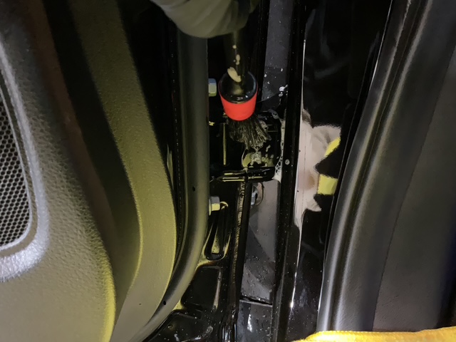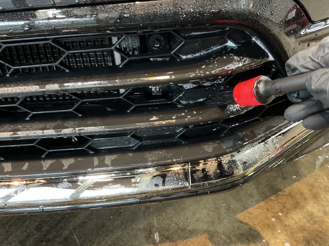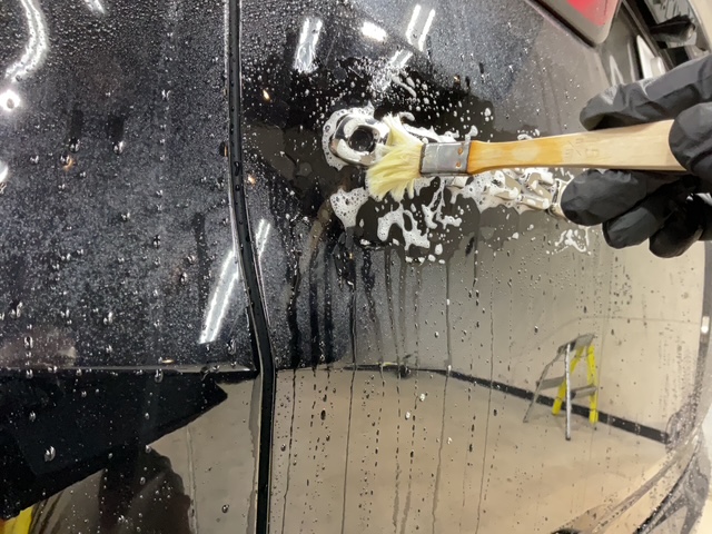 通常の洗車ではなかなか洗いにくい箇所も刷毛や柔らかいブラシで丁寧に洗浄していきます。