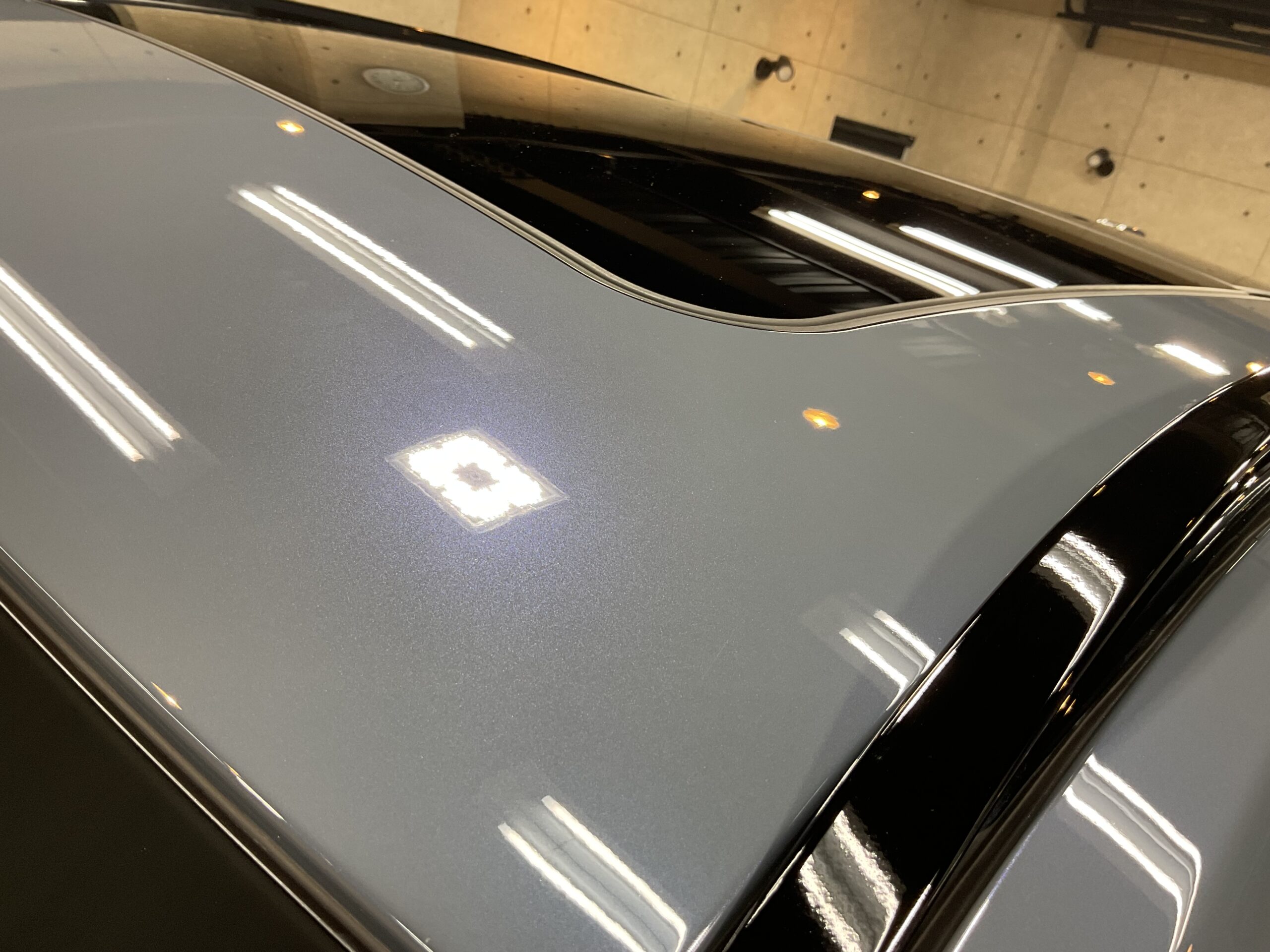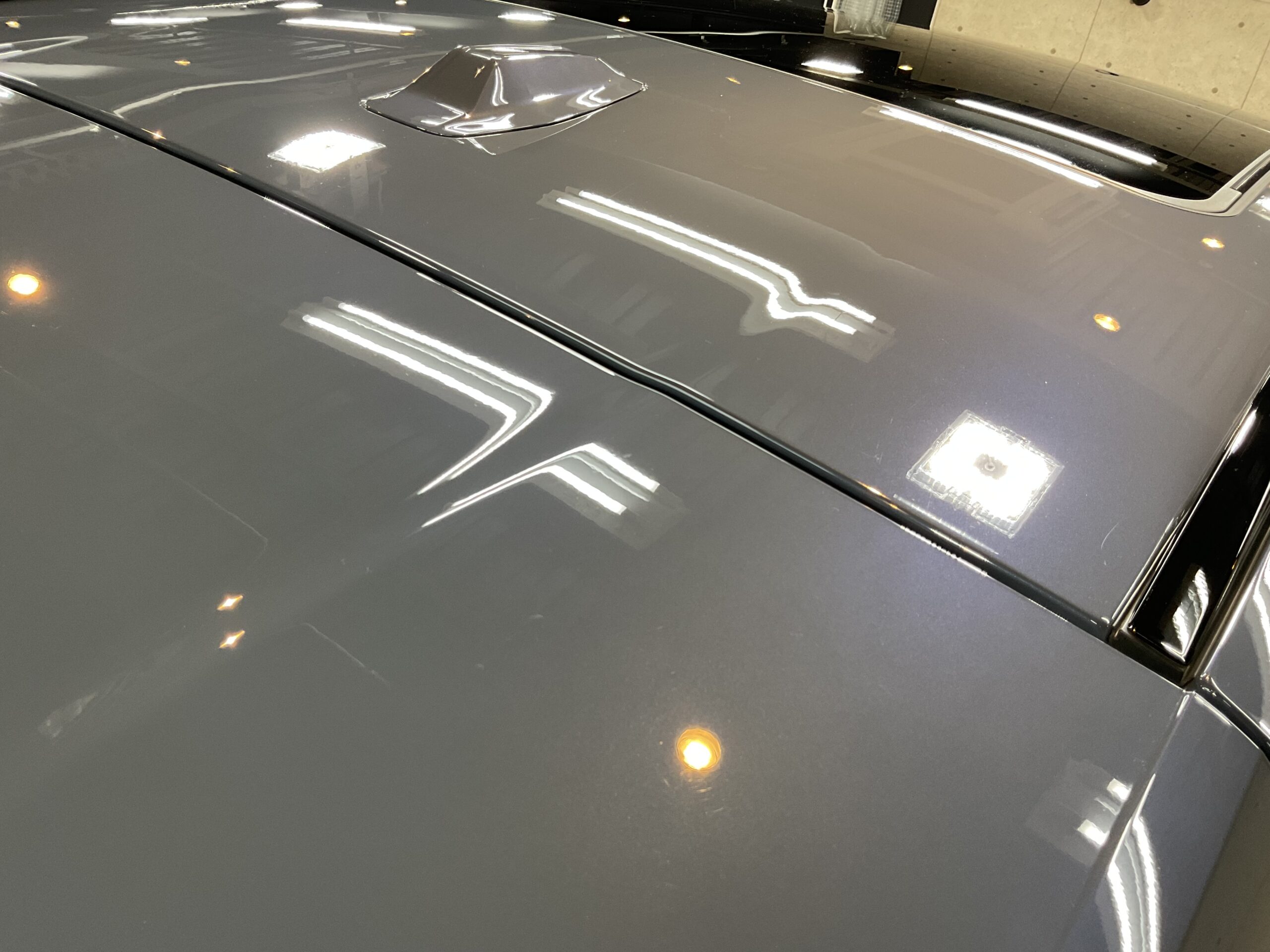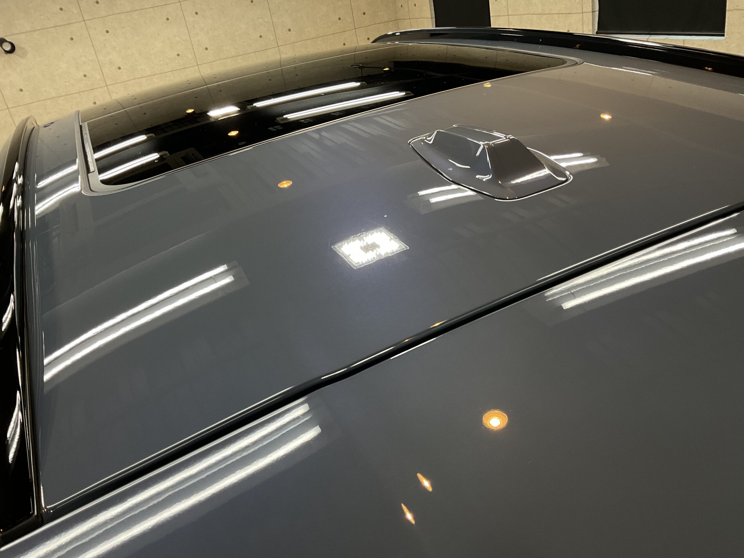 下地処理は、最初に手洗い洗車・鉄粉取りを行い、次に【Revolt Adjust System】と呼ばれるボディ研磨を行い、数ヵ所に付着していた水シミ、小キズを可能な範囲で丁寧に除去していきました。その結果、塗装本来の艶を取り戻すことができ、ピカピカな状態になりました。