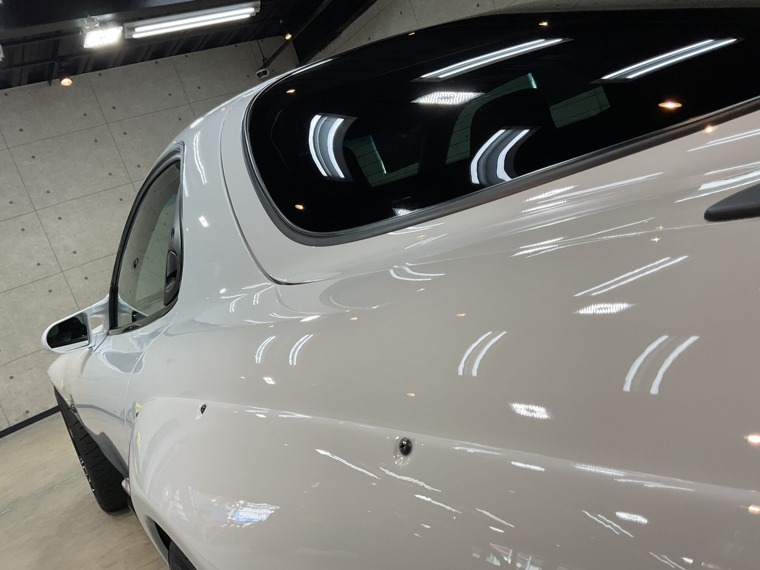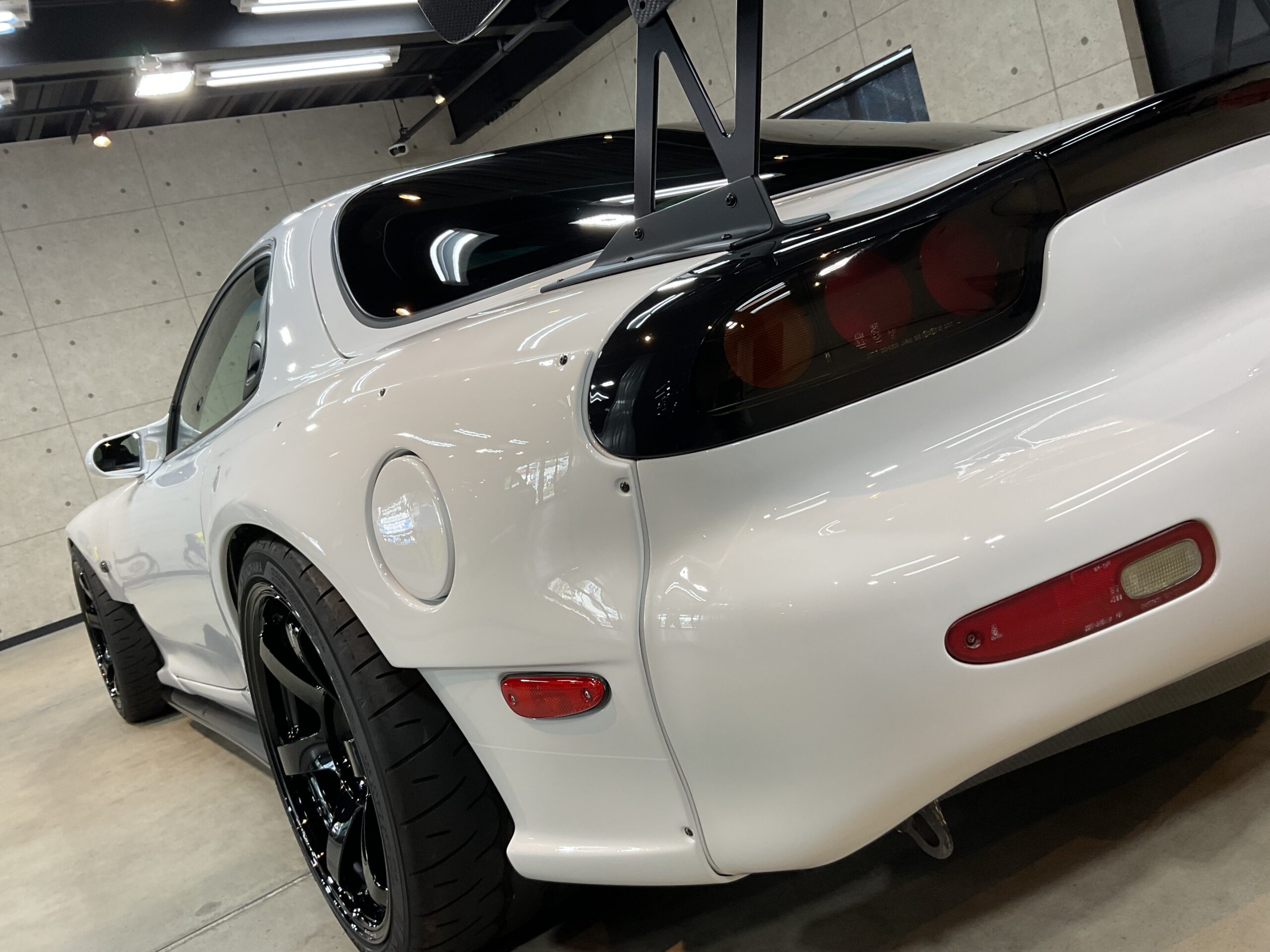 こちらのRX-7は全塗装車両でしたので純正塗装とは違い、より繊細で丁寧な下地処理が必須になります。エアロ等も装着されていましたので、慎重に作業を進めてリボルト独自開発の完全硬化型3層セラミックコーティングを施工し、希少なお車をコーティングによりさらに美しく仕上させていただきました。