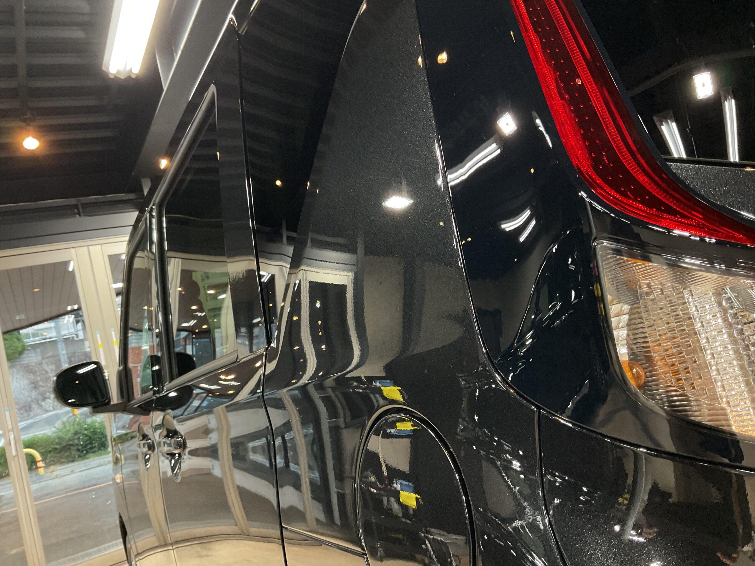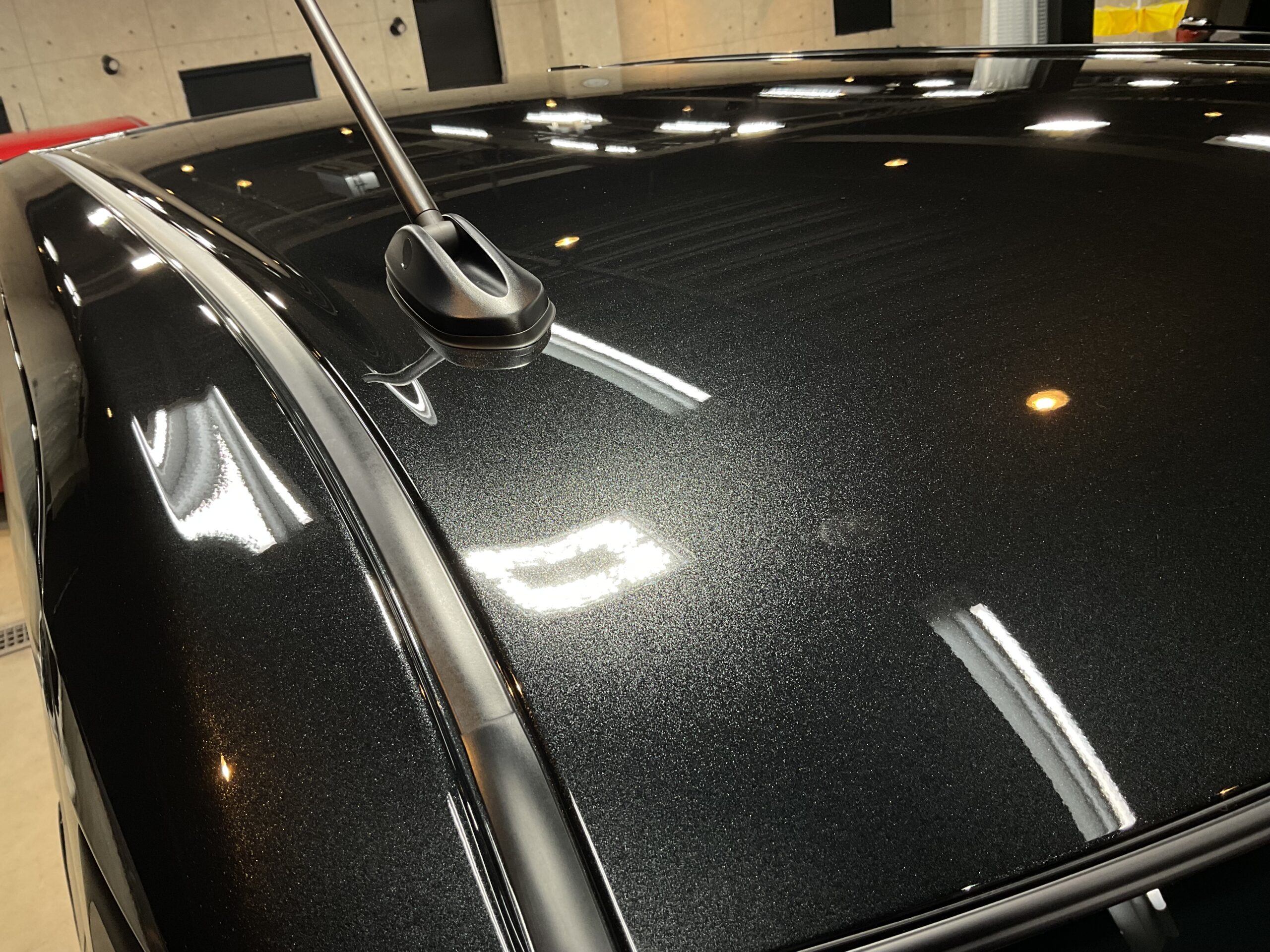 下地処理は、最初に手洗い洗車・鉄粉取りを行い、次に【Revolt Adjust System】と呼ばれるボディ研磨を行い、数ヵ所に付着していた水シミ、小キズを可能な範囲で丁寧に除去していきました。その結果、塗装本来の艶を取り戻すことができ、ピカピカな状態になりました。