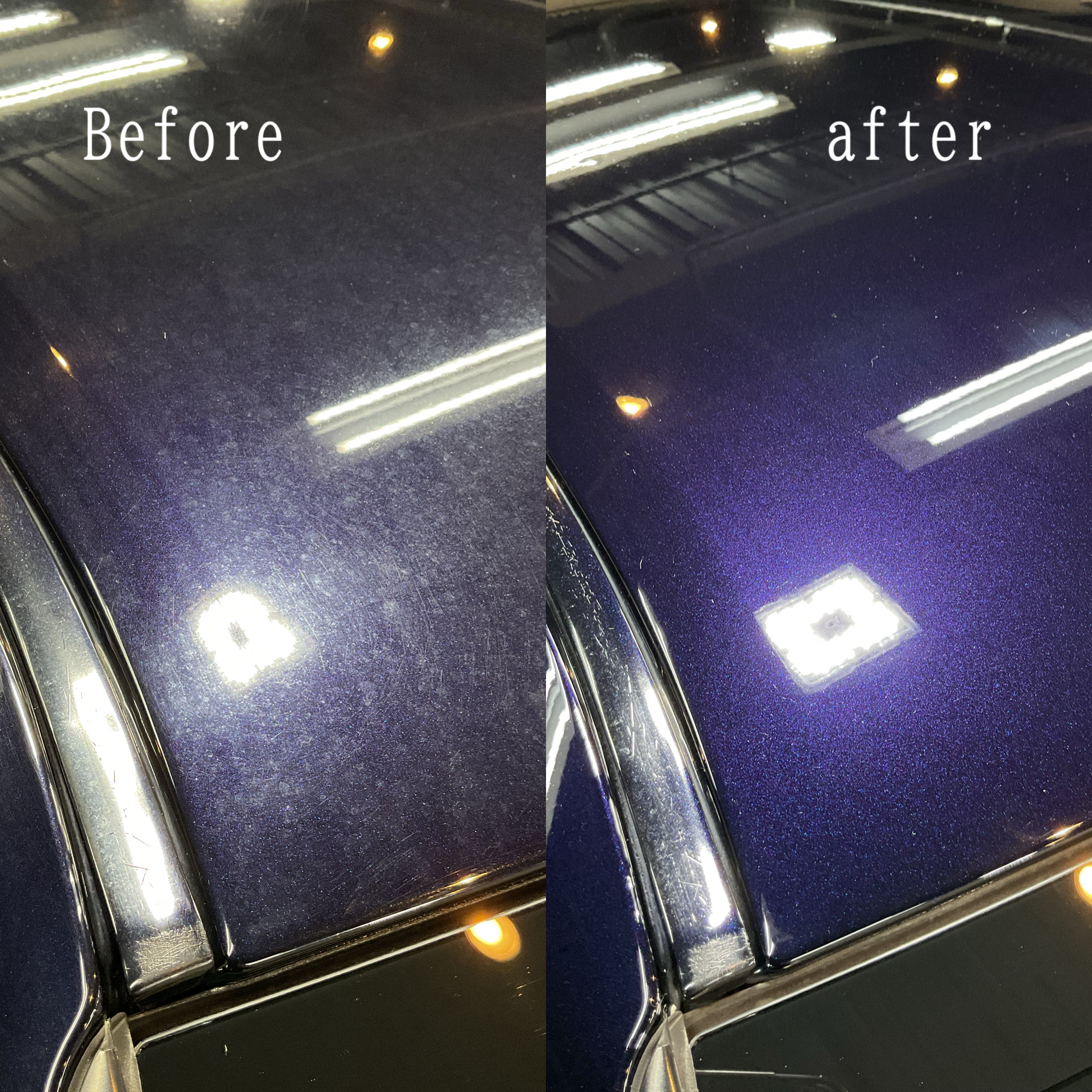 こちらの車両は経年車ということで、水シミや拭きキズ、汚れ等が多かったですが、以前に他社様のコーティングを施工されていましたので比較的スムーズに下地処理を進めれました。塗装状態をみながら可能範囲で塗装表面を整えてからガラス系2層コーティングのリボルトをしっかり未塗装樹脂まで施工してさせていただきました。塗装本来の色つやが戻りさらにリボルトで艶が増しました。ビフォーアフターの画像も載せてありますのでぜひご覧くださいませ。