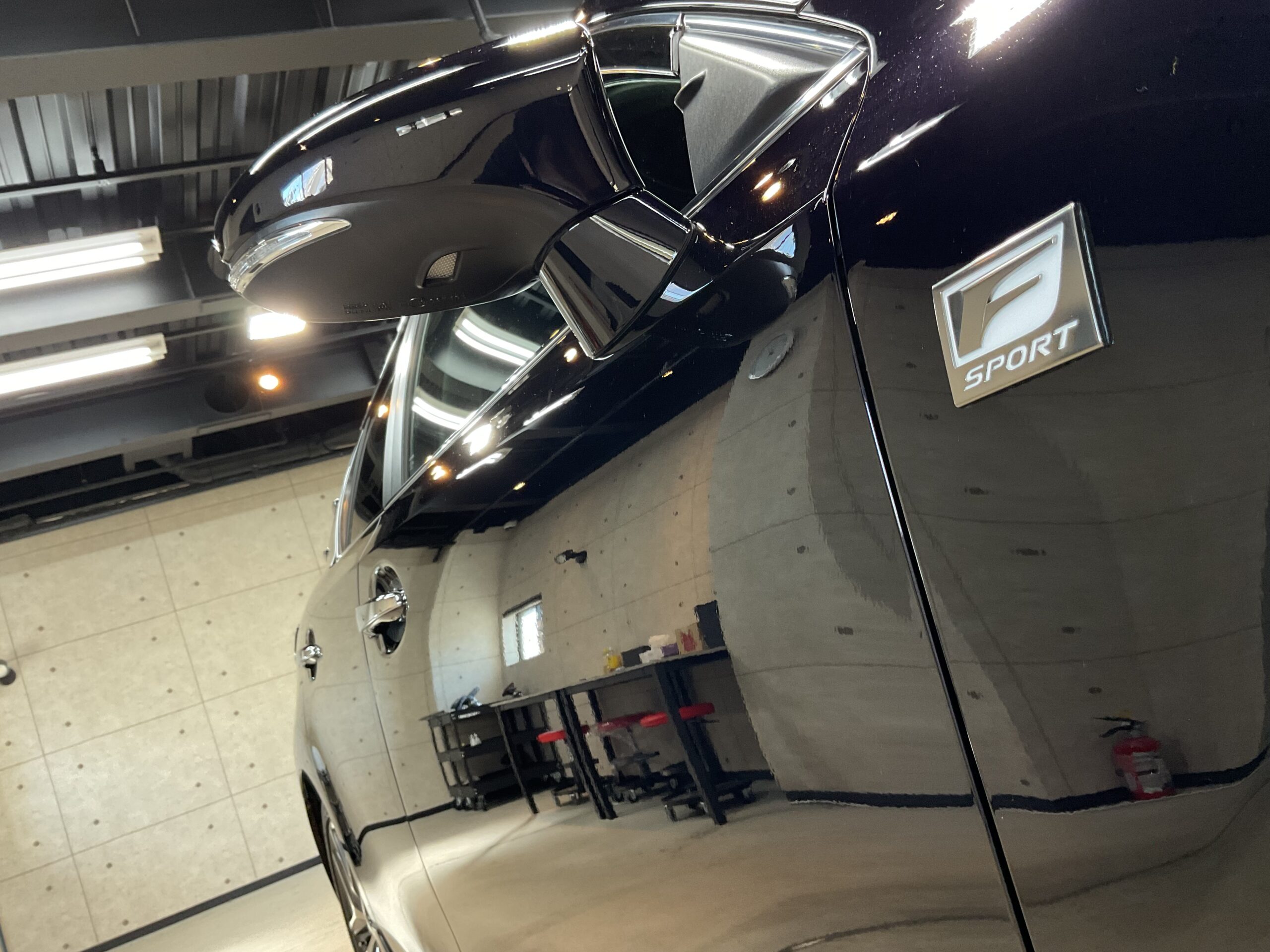 作業に関しては、最初に手洗い洗車・鉄粉取りを行い、その後にコーティング前の下地処理となる【Revolt Adjust System】というボディ研磨を行い、数ヵ所に付着していた小キズ、水シミを可能な範囲で除去していきました。