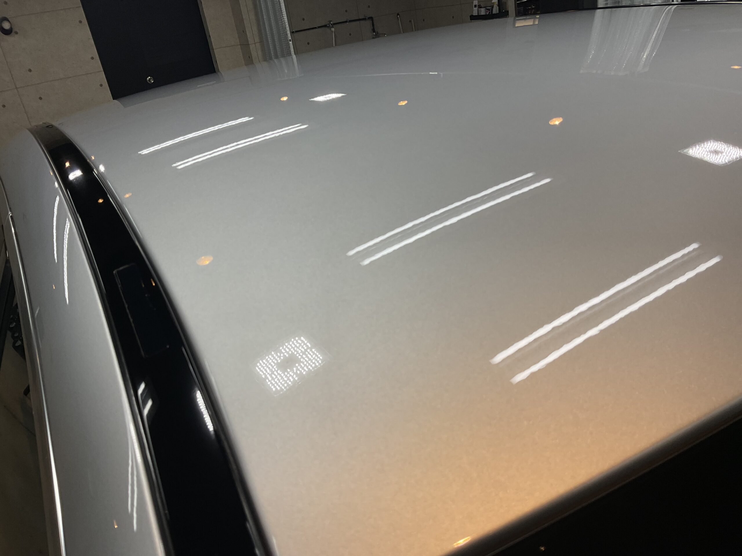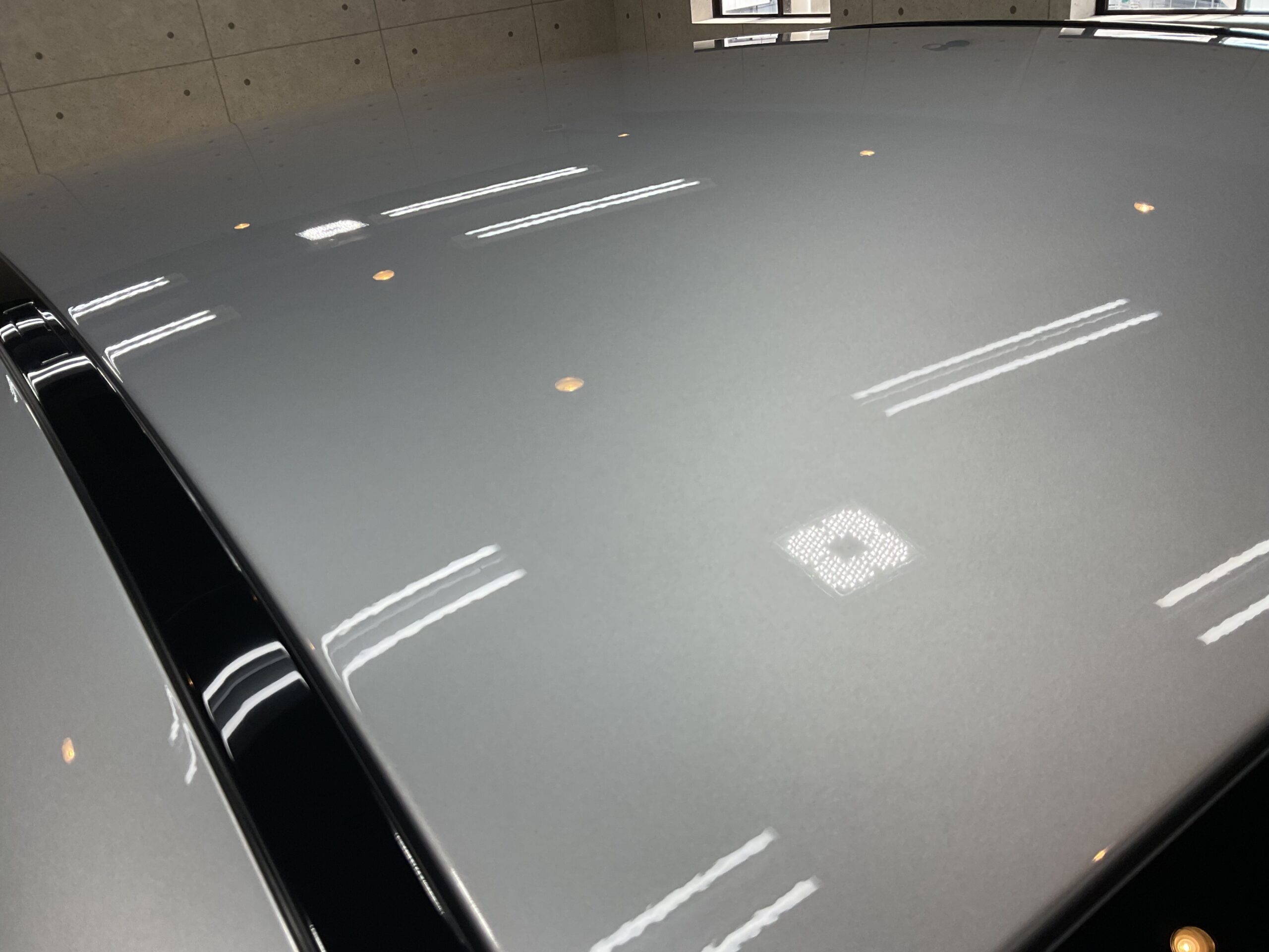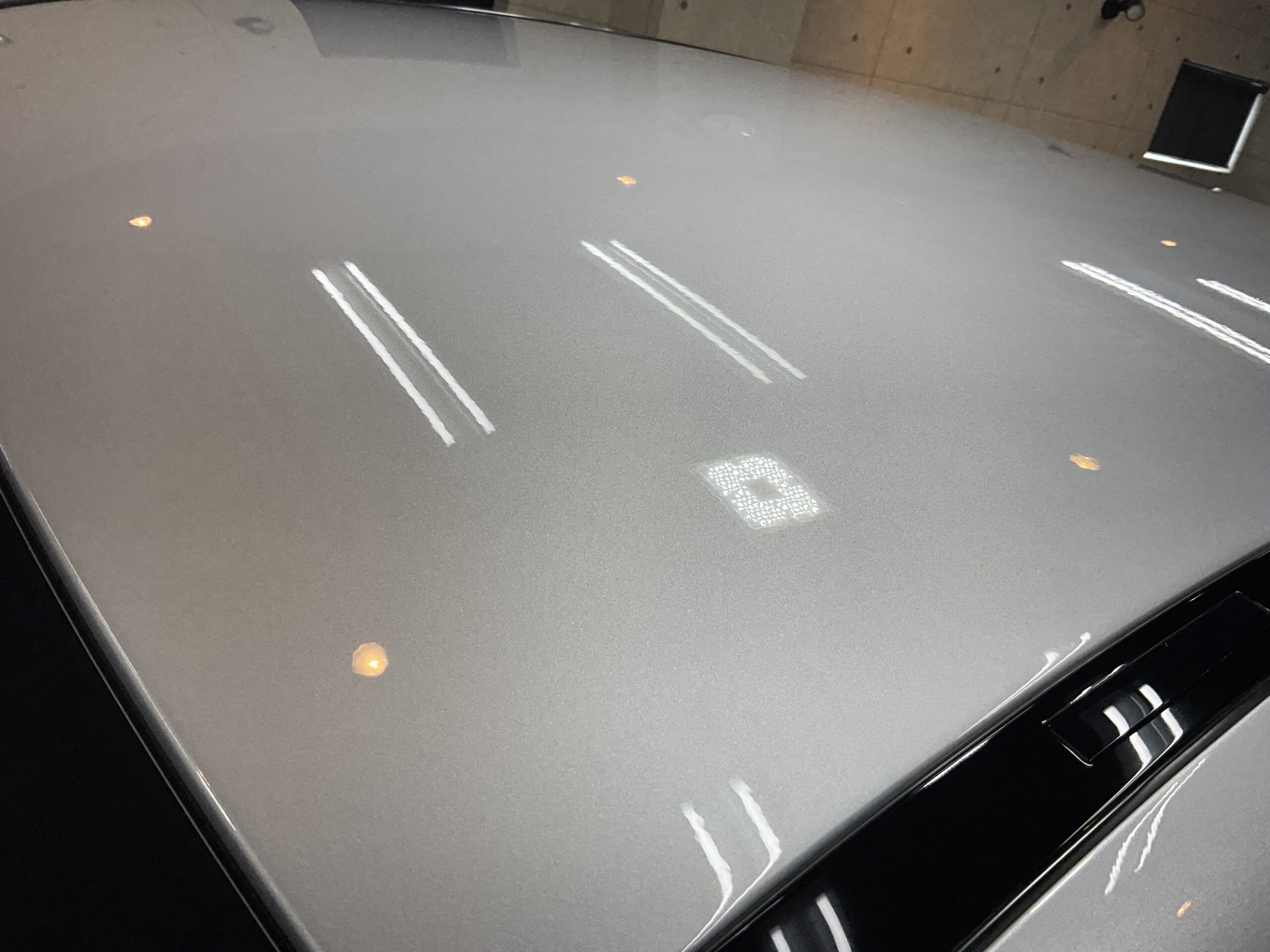 下地処理は、最初に手洗い洗車・鉄粉取りを行い、次に【Revolt Adjust System】と呼ばれるボディ研磨を行い、数ヵ所に付着していた水シミ、小キズを可能な範囲で丁寧に除去していきました。その結果、塗装本来の艶を取り戻すことができ、ピカピカな状態になりました。