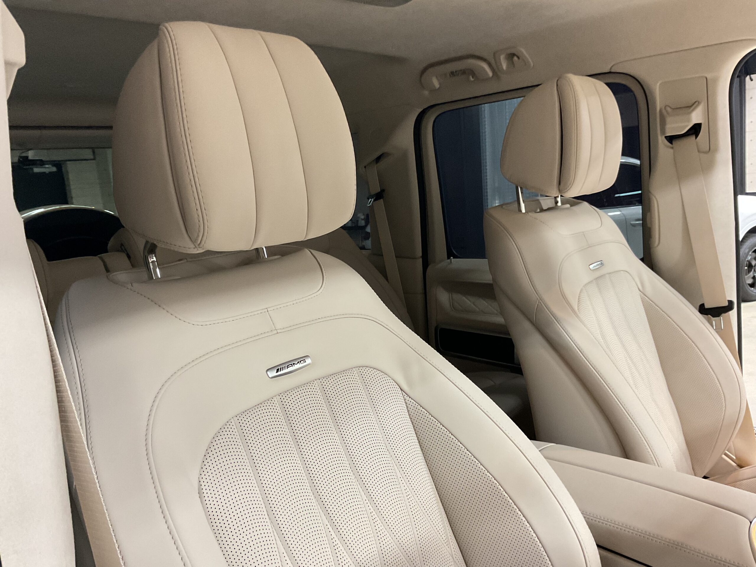 今回こちらの『メルセデスAMG G63』に、リボルト・プロ エクストリーム、ホイールコーティング、窓ガラス撥水加工(全面)、シートコーティング(前2席)を施工させていただきましたので、ご紹介いたします。