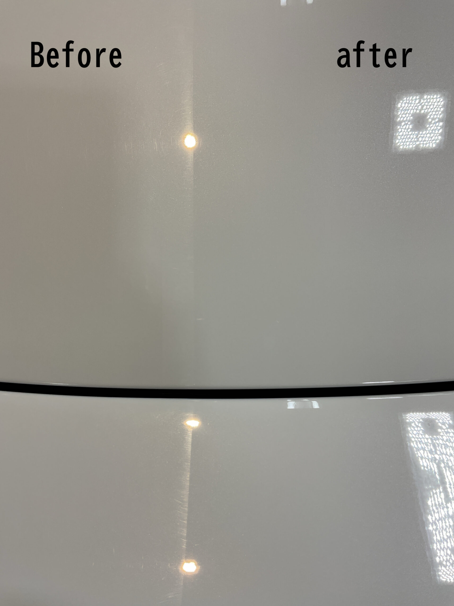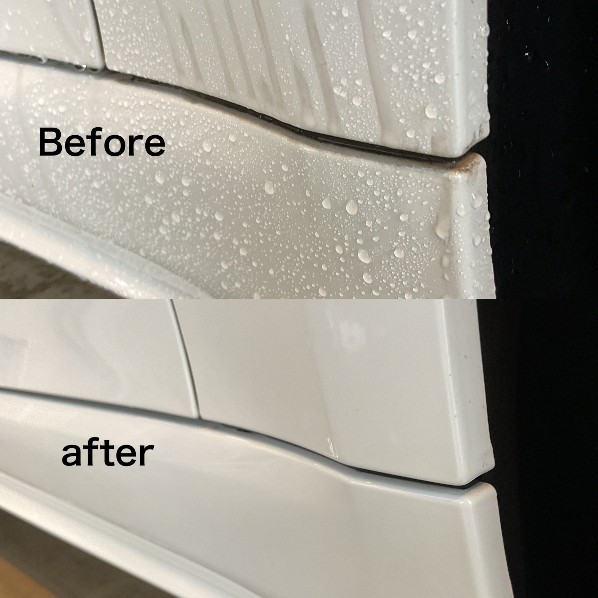 下地処理とリボルト・プロのコーティングによって、ボディの艶・輝きが一段と増し、非常に美しい仕上がりとなりました。撥水力・防汚性が非常に高くなりますし、艶・輝きも衰えにくいコーティングメニューですので、大変オススメのメニューでございます。