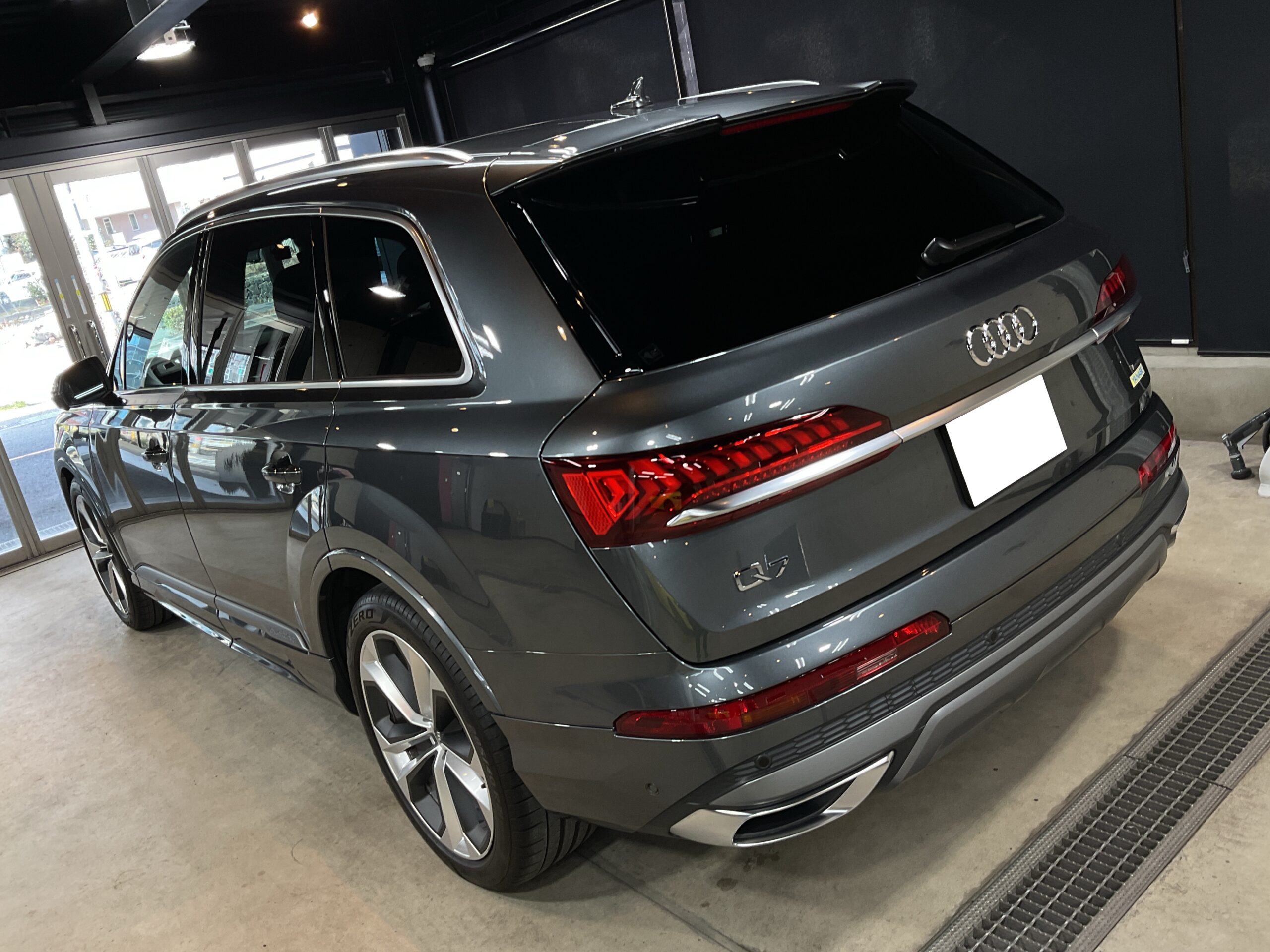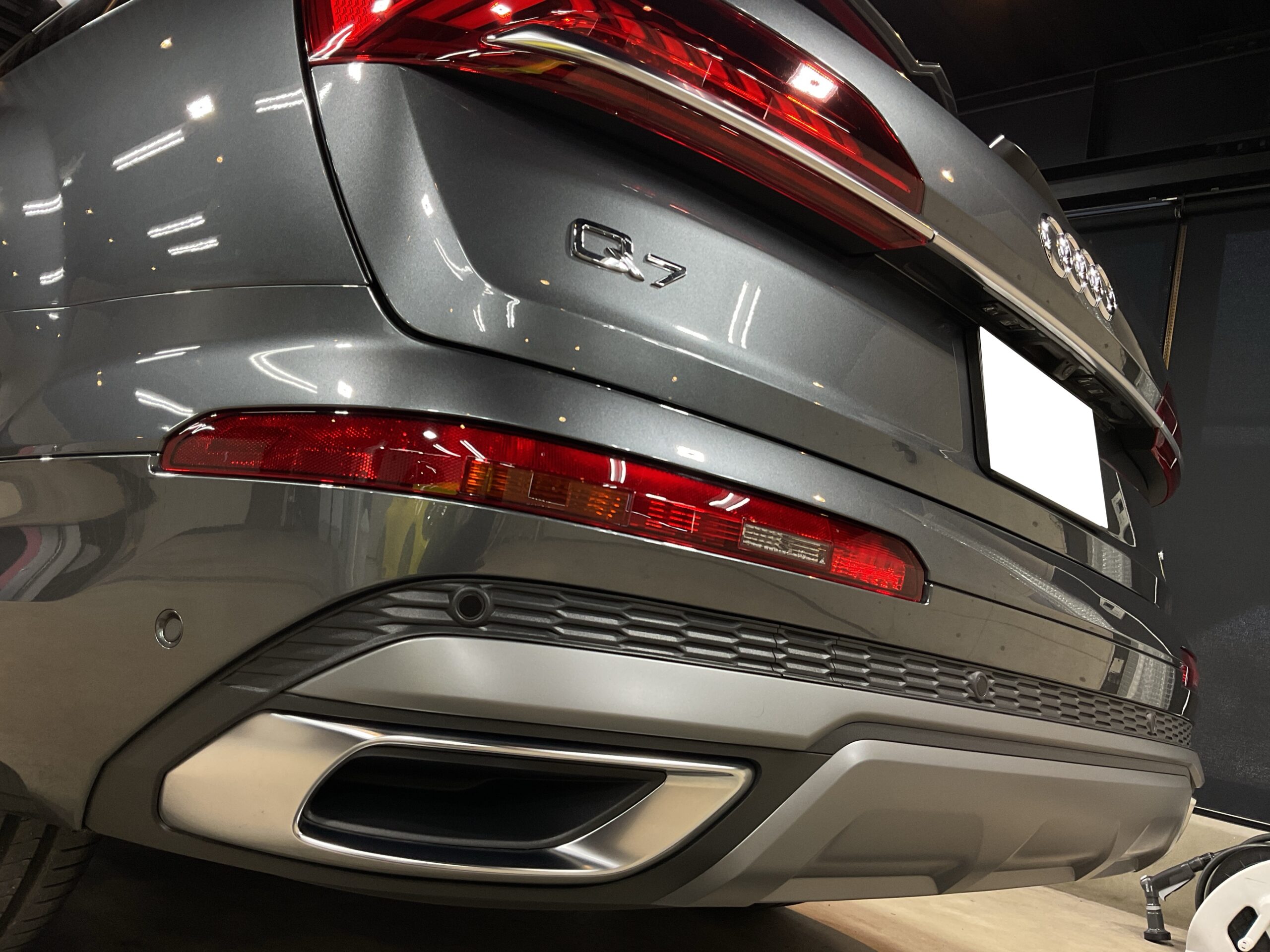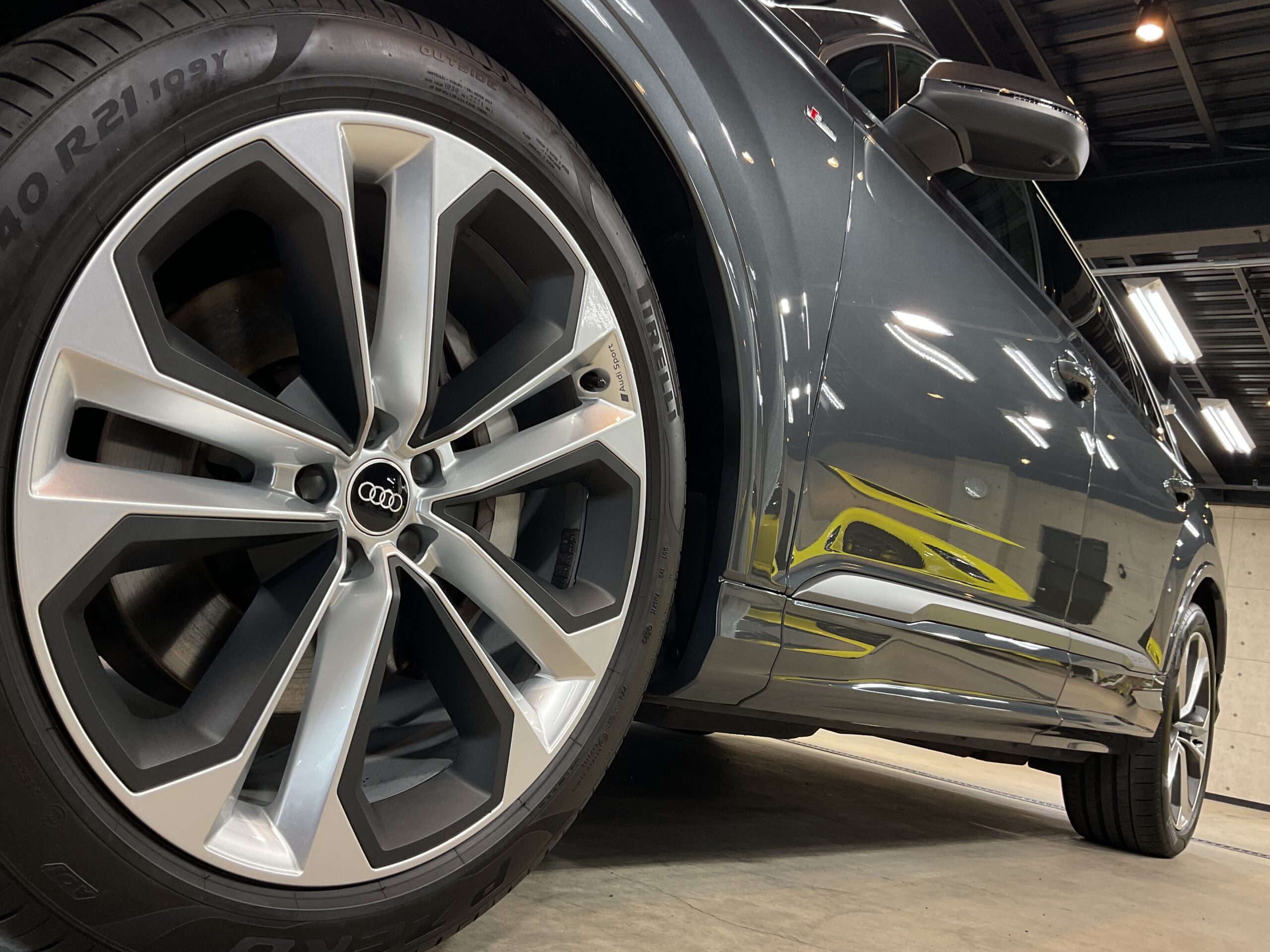 今回こちらの『アウディQ7』に、リボルト・プロ エクストリーム、ホイールコーティング、窓ガラス撥水加工(フロントガラス)、内装コーティング(ドア内張り)を施工させていただきましたので、ご紹介いたします。