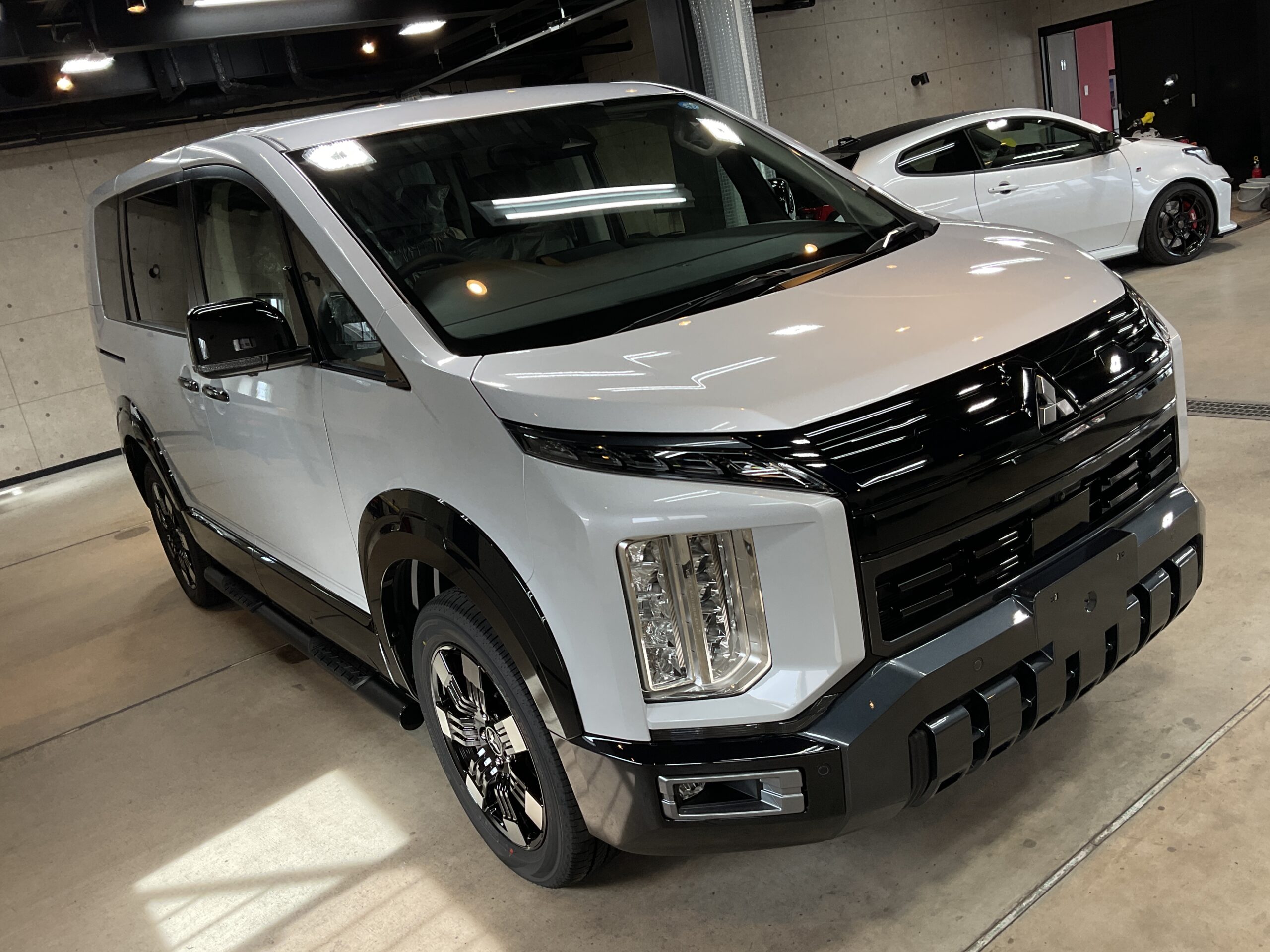今回こちらの『三菱デリカD5』に、リボルト・プロ、ホイールコーティング、窓ガラス撥水加工を施工させていただきましたので、ご紹介いたします。