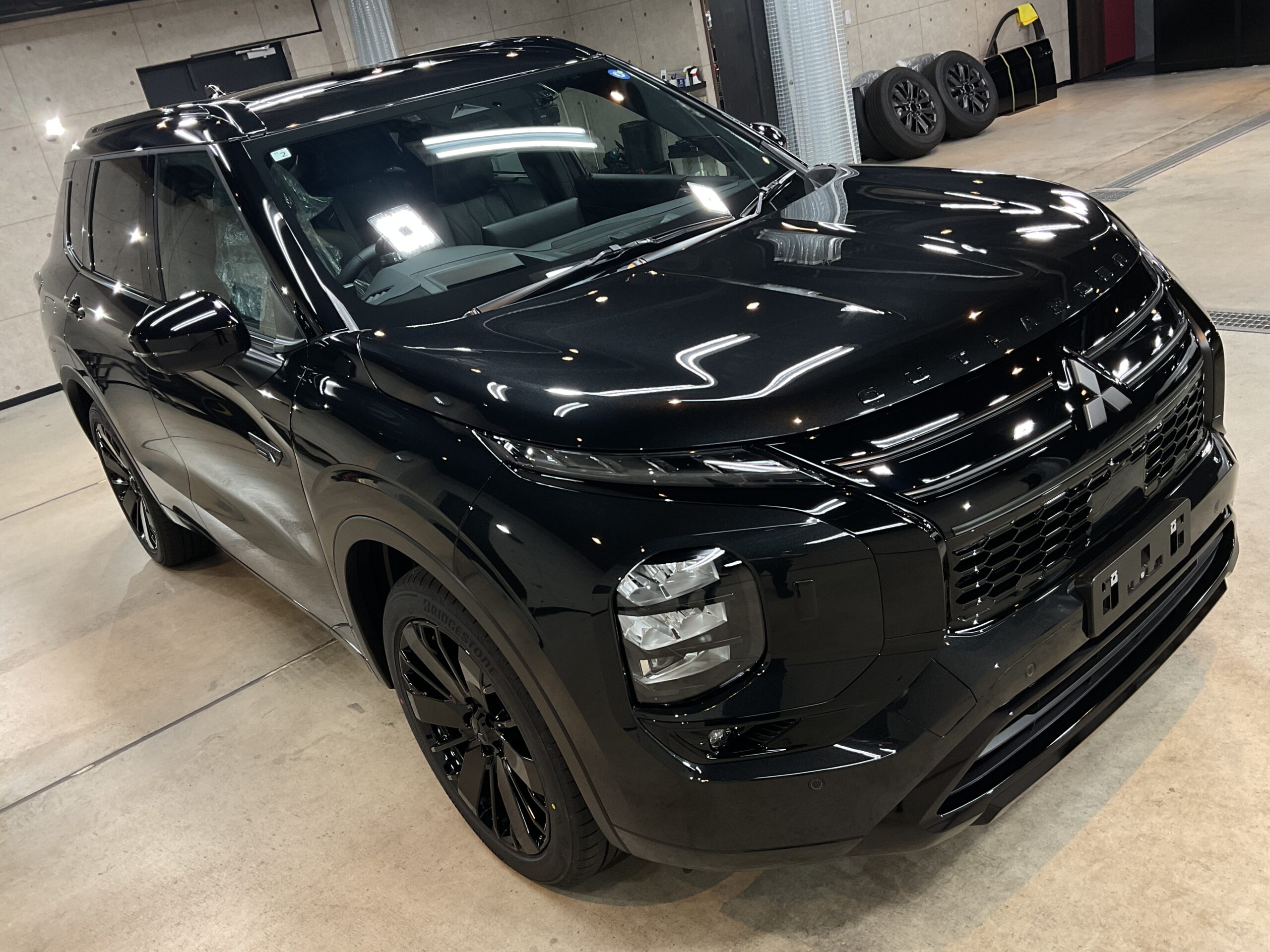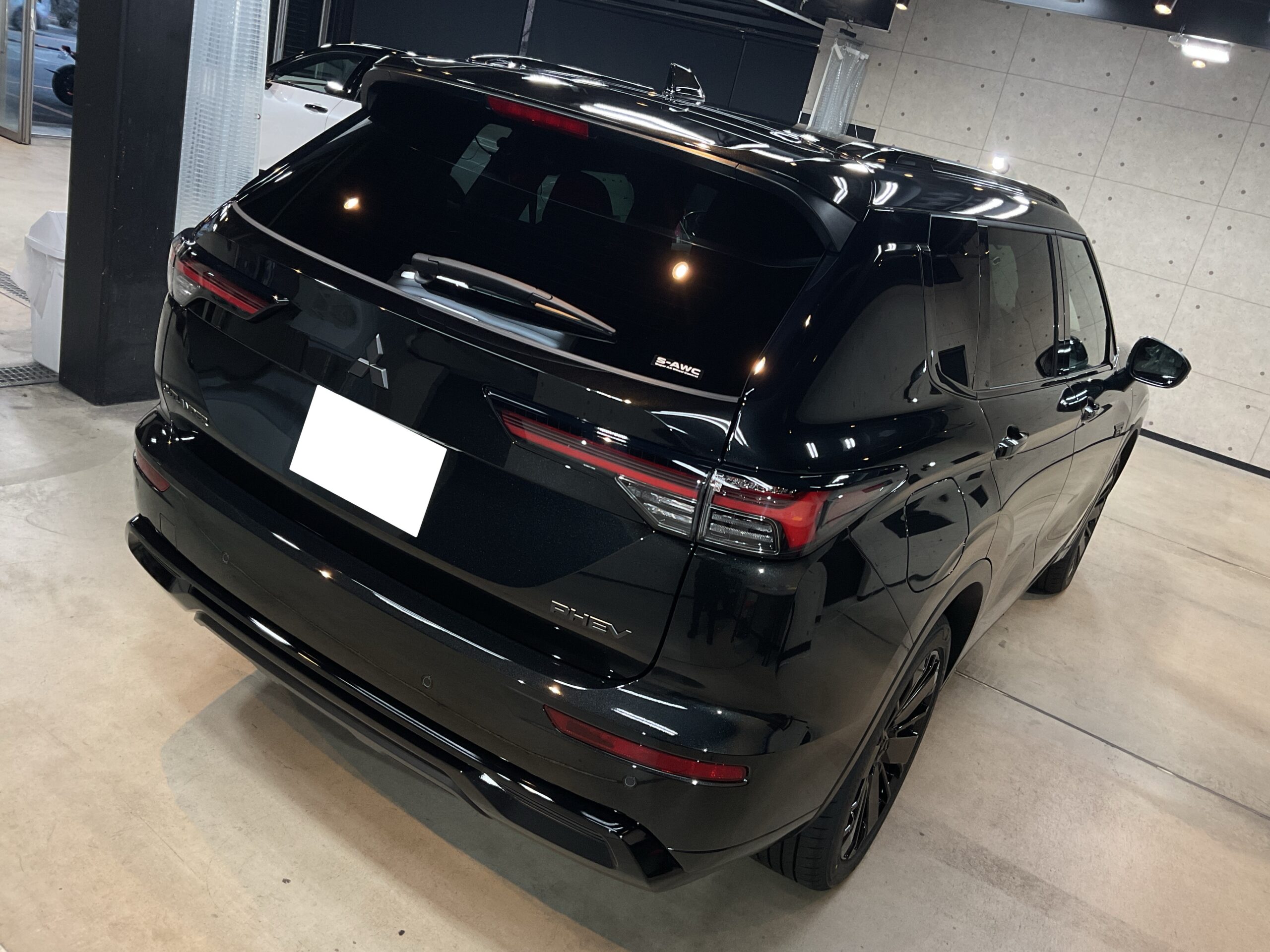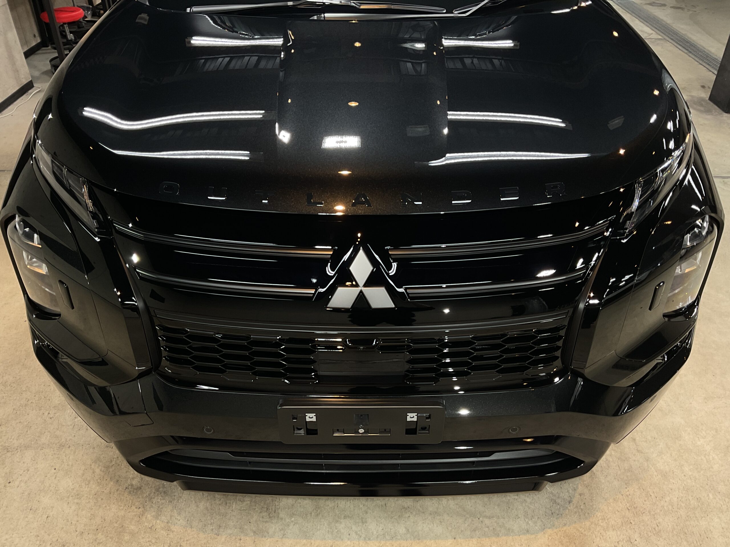 新車でご入庫いただきましたアウトランダーPHEVのブラックエディションです。