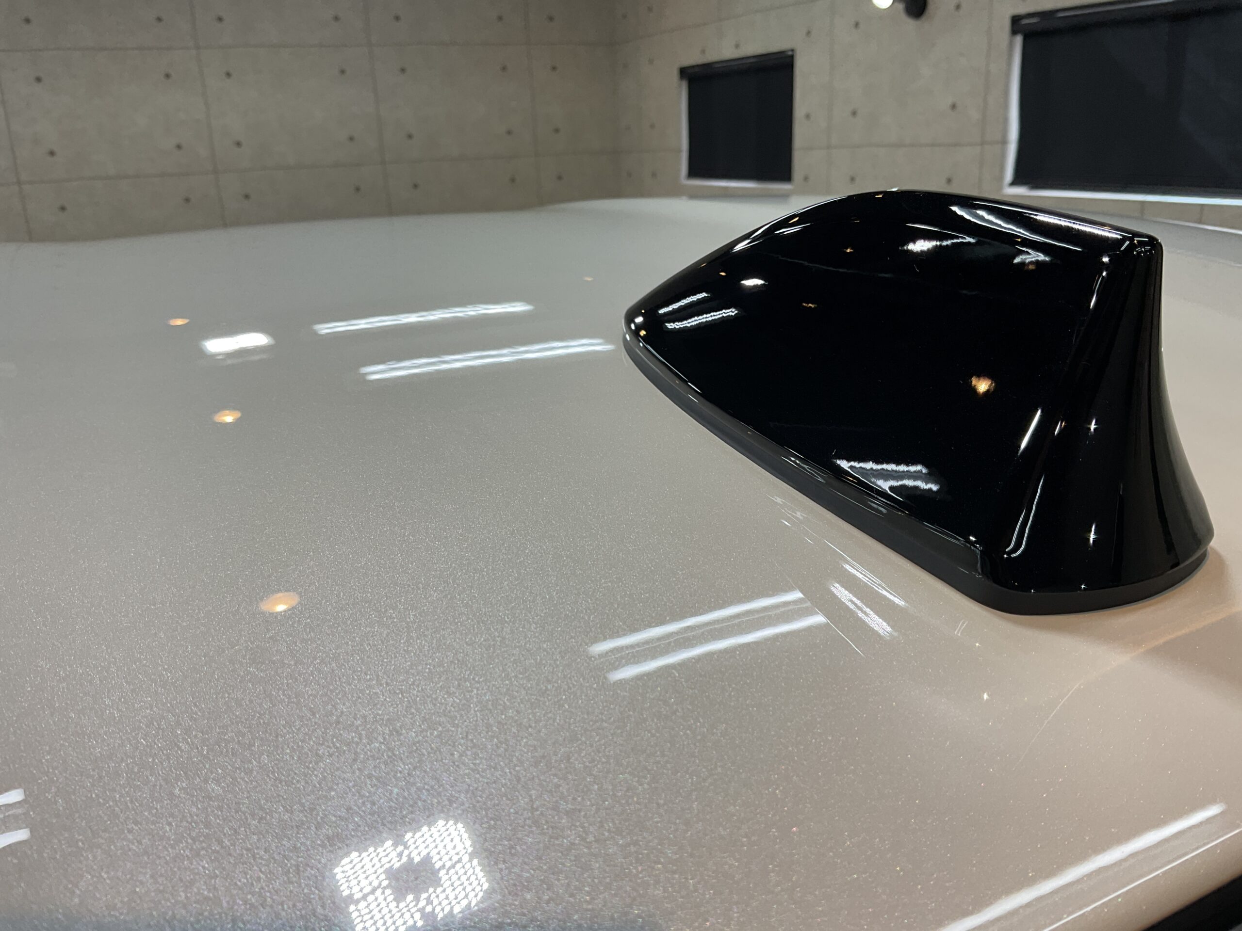 ボディ研磨後は、再度手洗い洗車を行ってボディ表面に付着している埃などを除去してから、コーティング施工をさせていただきました。今回は、リボルト・プロ エクストリームを施工させていただきましたので、1層目に無溶剤で完全硬化型のセラミックコーティング剤【リボルト・プロ エクストリーム用 ベースコート】と2層目に紫外線軽減(UVカット)効果のあるガラス系コーティング剤【トップコート】を塗布した後、仕上げとして、より水シミが付きにくくなり、撥水効果をもたらす3層目の【オーバートップコート】を塗布して仕上げをさせていただいたことによって、さらにボディ塗装の艶・輝きが増して非常にキレイに仕上がりました。
