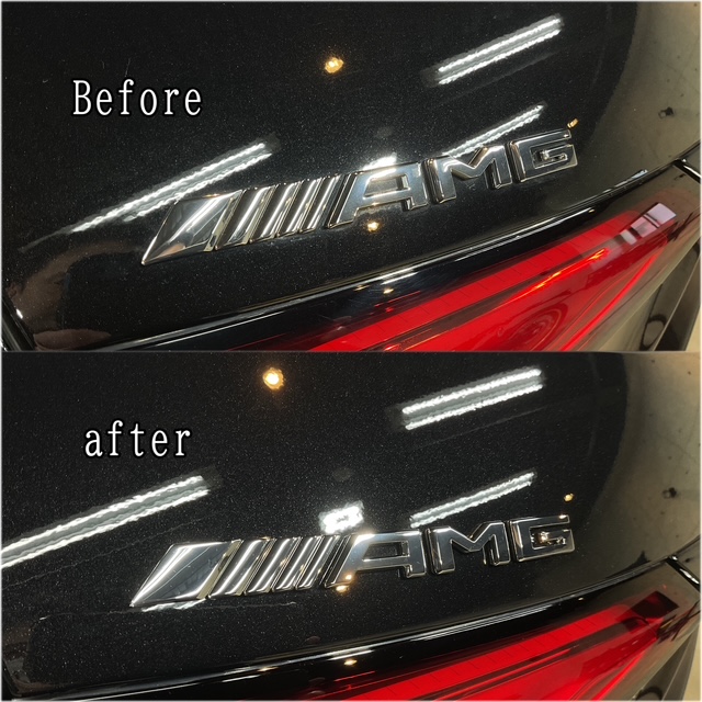 エンブレム周りも可能範囲で綺麗にします。